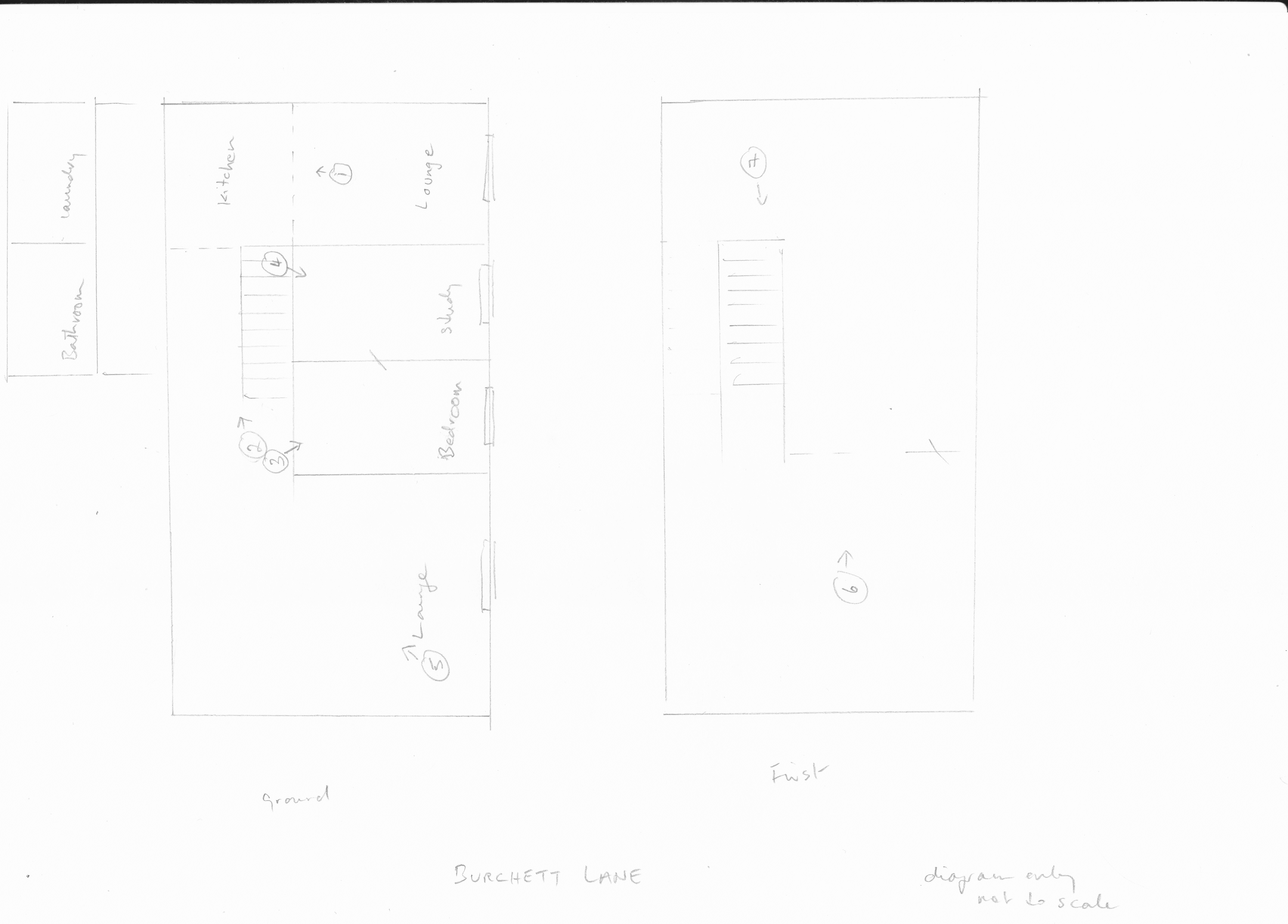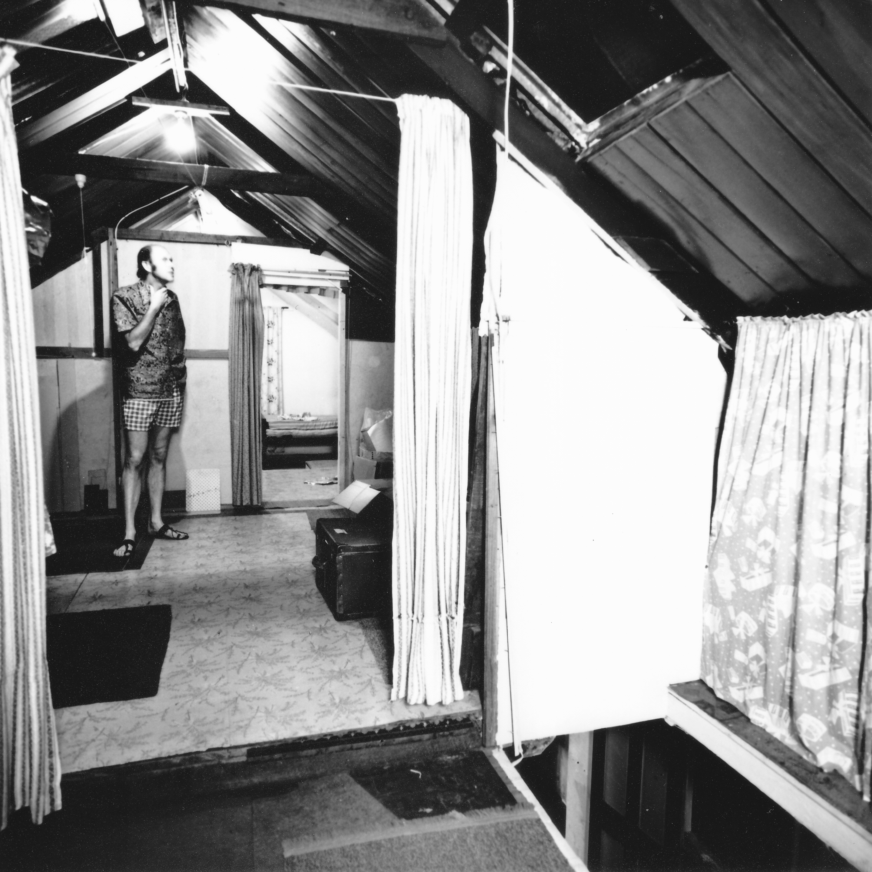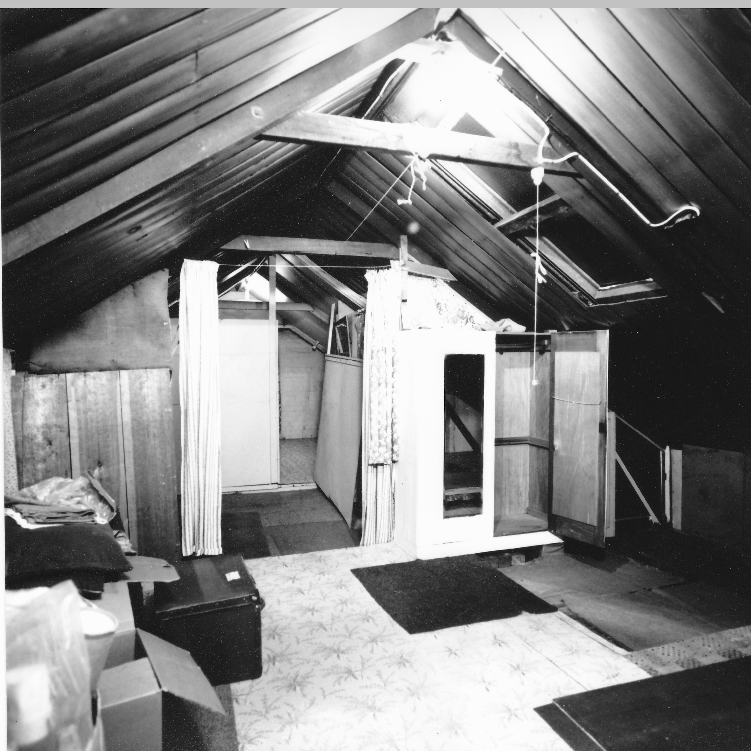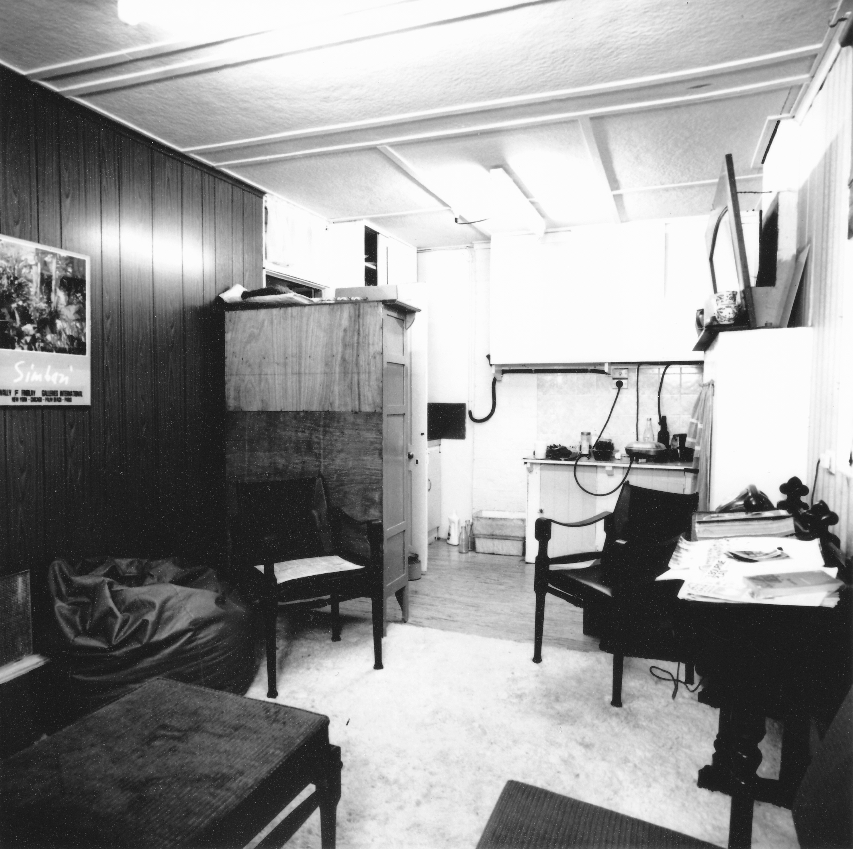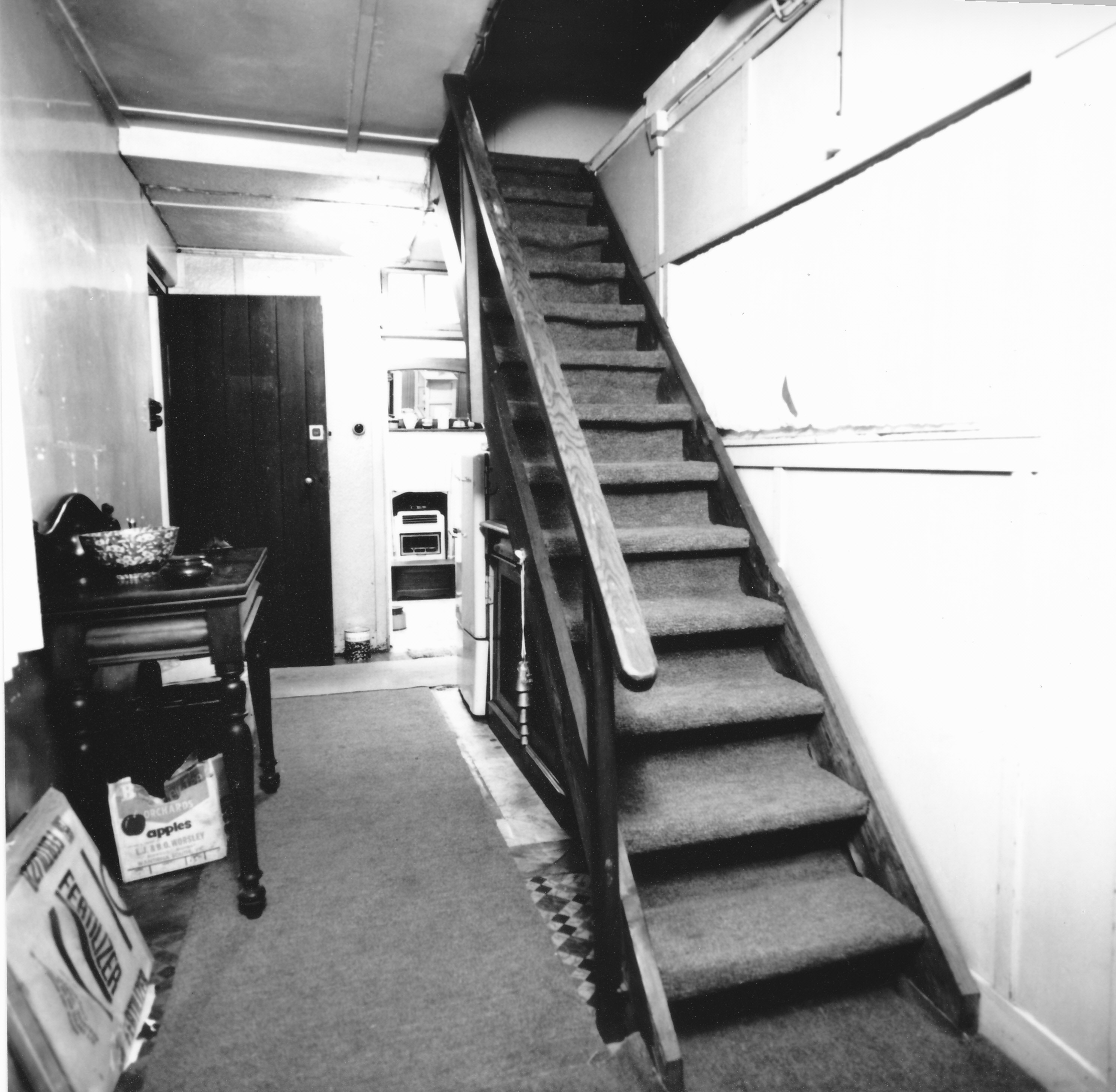 Vertical file Seven photos of the interior of the cottage in Burchett Lane once owned by Dick Thompson before his renovating it. The cottage was previously the headquarters of the Watch Tower Bible and Tract Society, more commonly known as the Jehovah's Witnesses who sold it to Mr. Thompson in 1972. Mr. Thompson appears in two of the photos. Also included is a diagramatic plan of the cottage showing where the photos were taken.
